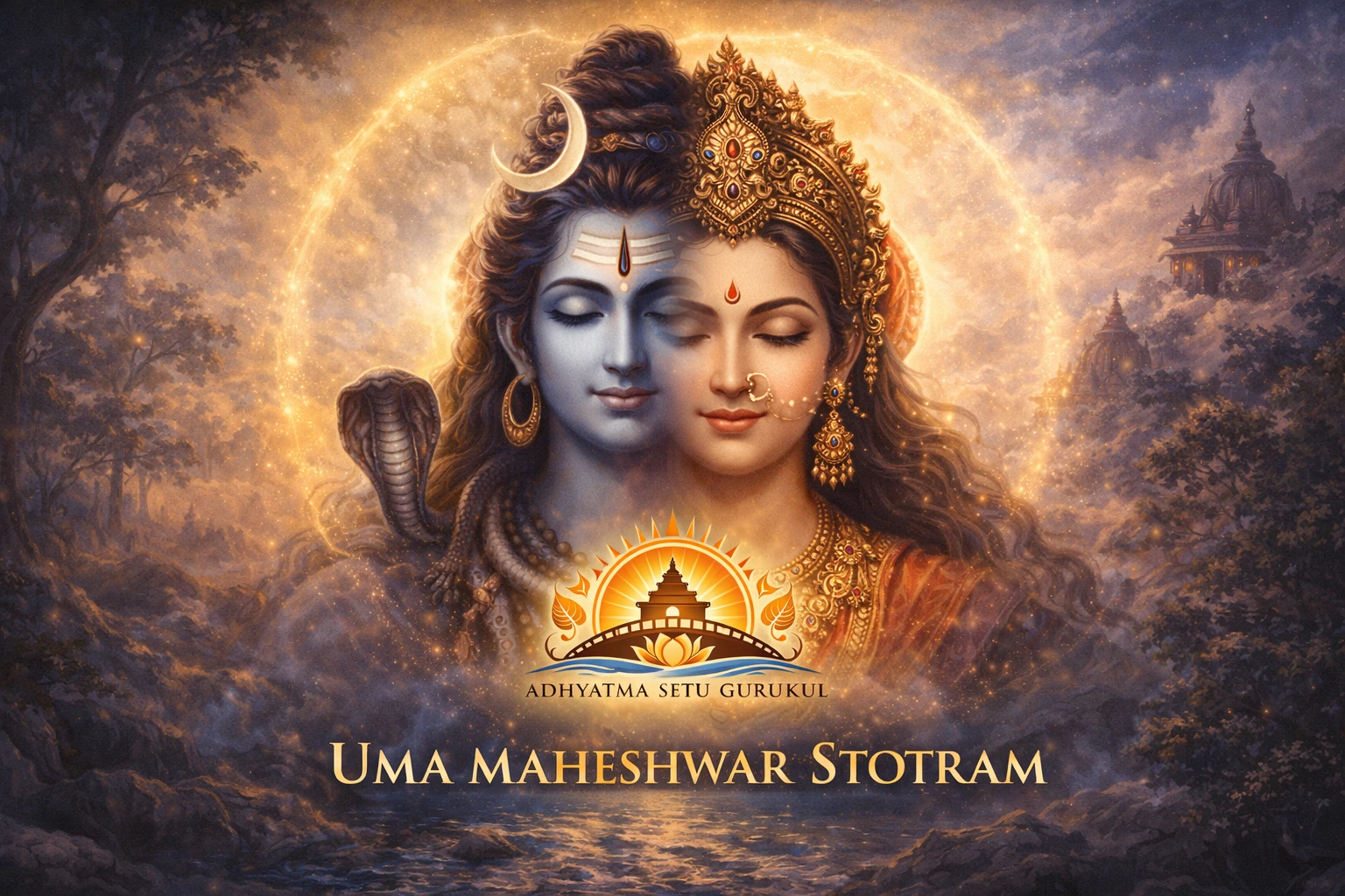 Chant this hymn of the divine couple and meditate on the union of Shiva and Shakti — stillness and energy as one.